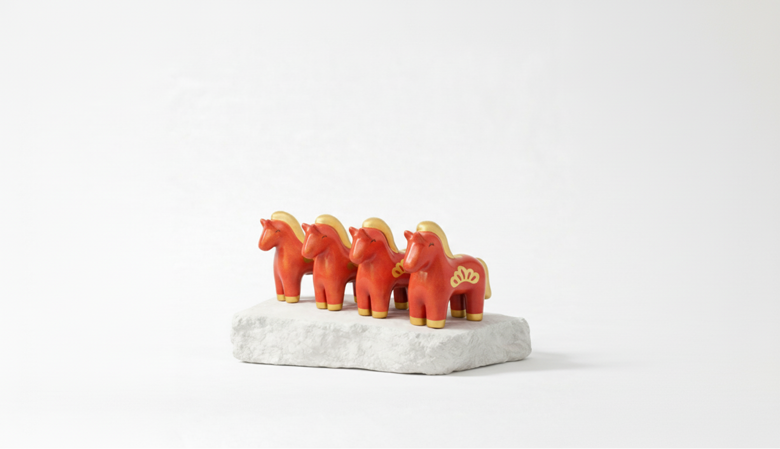 紅與金在此不被視為傳統符號,而轉化為視覺重心:在克制的造型之中提供恰到好處的溫度,使作品既具存在感,又能融入現代空間的節奏。
